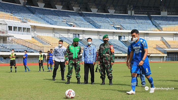 BANDUNG – Gelandang Persib Bandung, Abdul Aziz turut hadir dalam acara Penalty Kick Challenge dan coaching clinic bersama mantan Persib asal Jepang, Shohei Matsunaga di Stadion Gelora Bandung Lautan Api (GBLA), Kamis (17/12/2020).