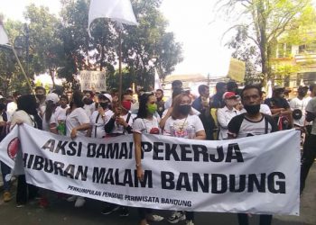 BANDUNG - Sejumlah pekerja tempat hiburan malam di Kota Bandung berunjuk-rasa di Balai Kota Bandung, Jalan Wastukencana Kota Bandung, Senin ...