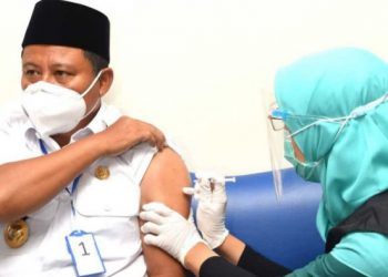 BANDUNG - Wakil Gubernur (Wagub) Jawa Barat, UU Ruzhanul Ulum sempat merasa tegang saat hendak disuntik vaksin Covid-19 di Bandung, ...